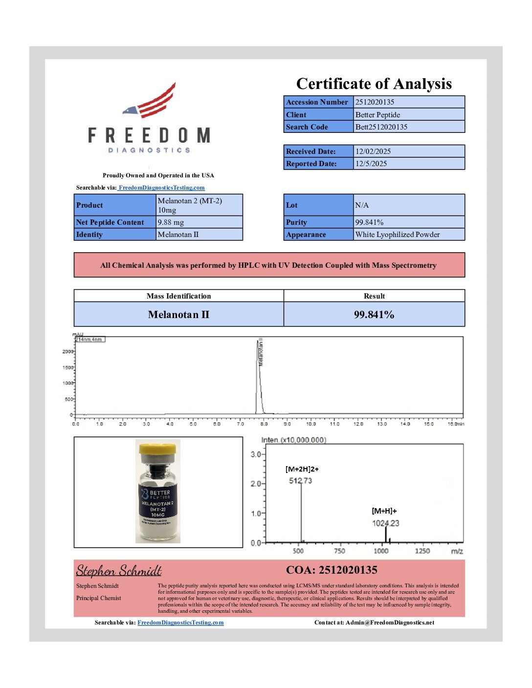 Research has focused on MT-2’s effects on melanin production, UV protection, libido, and energy balance in laboratory models.